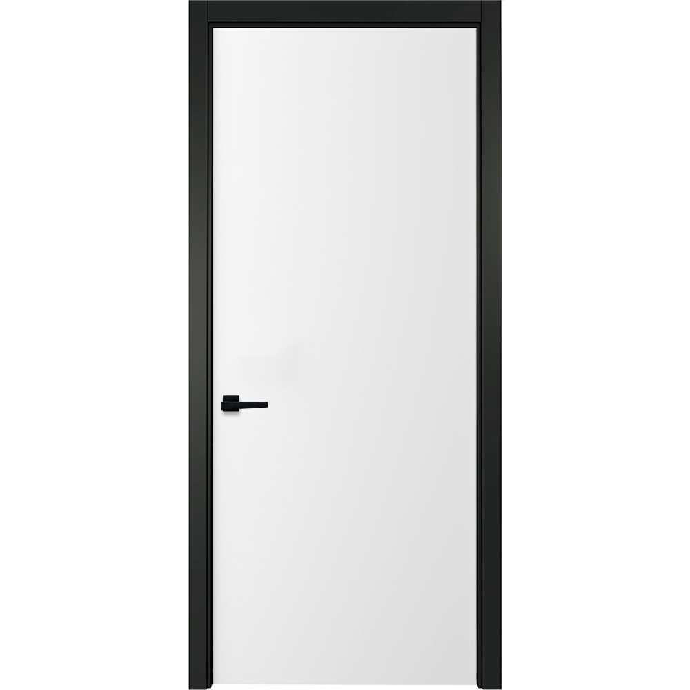 Межкомнатная белая дверь Геометрия 1 с чёрным наличником