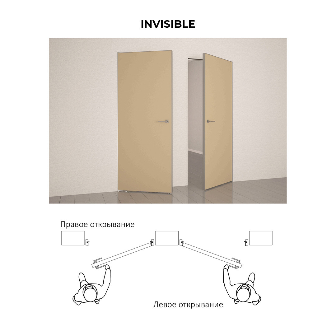 • невидимый монтаж – дверь сливается со стеной, создавая эффект скрытого проема.