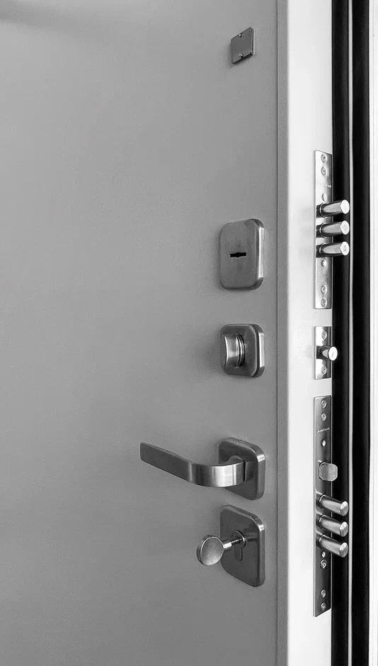врезная броненакладка на цилиндровый замок, ночная задвижка, рёбра и гибы жёсткости по периметру полотна и короба, придающие повышенную прочность, два замка сувальдный 2-ого и цилиндровый 4-ого (высшего) класса взломостойкости, антивандальный притвор, противосъёмные ригели, калёный стержень в одном из ригелей сувальдного замка, усиление замковой зоны 1.5 мм листом металла